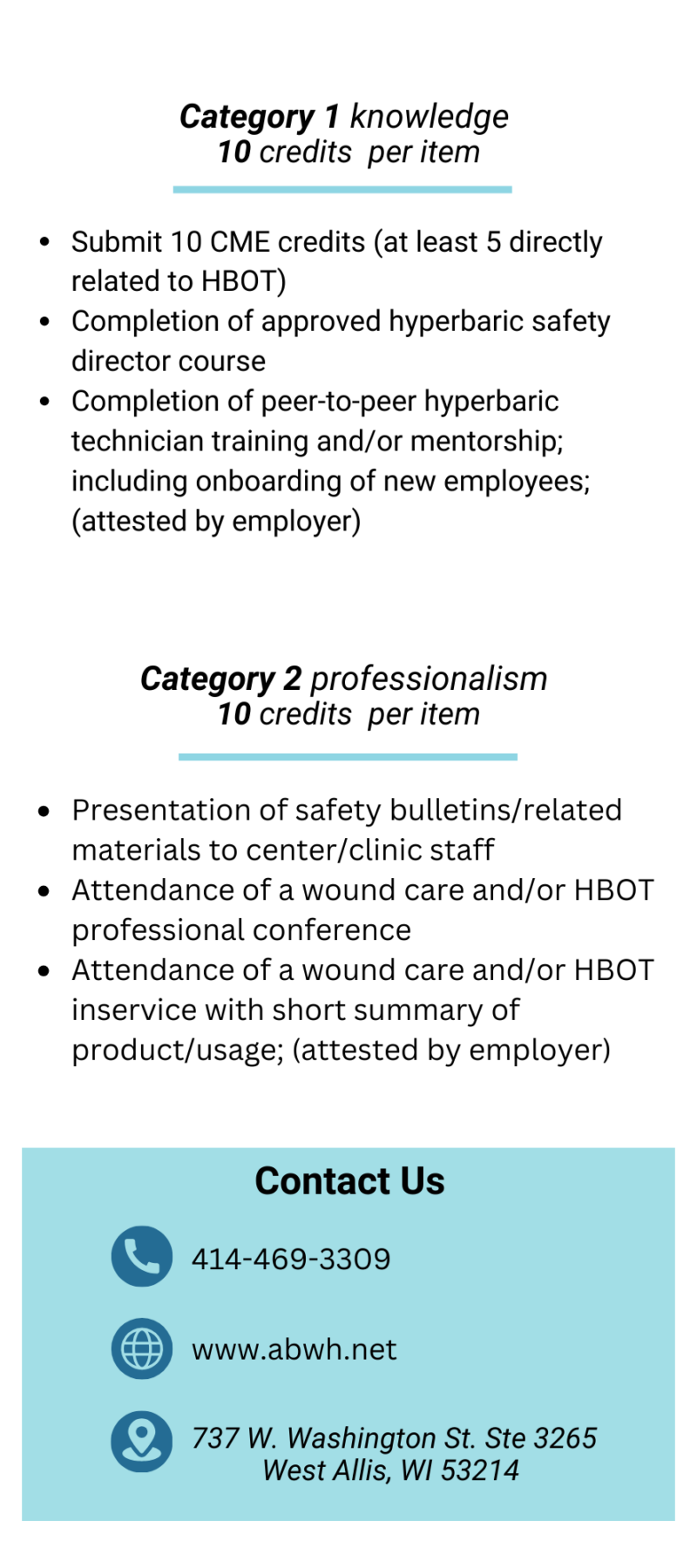At least 5 CME credits must be related to hyperbaric medicine - Credits may include: