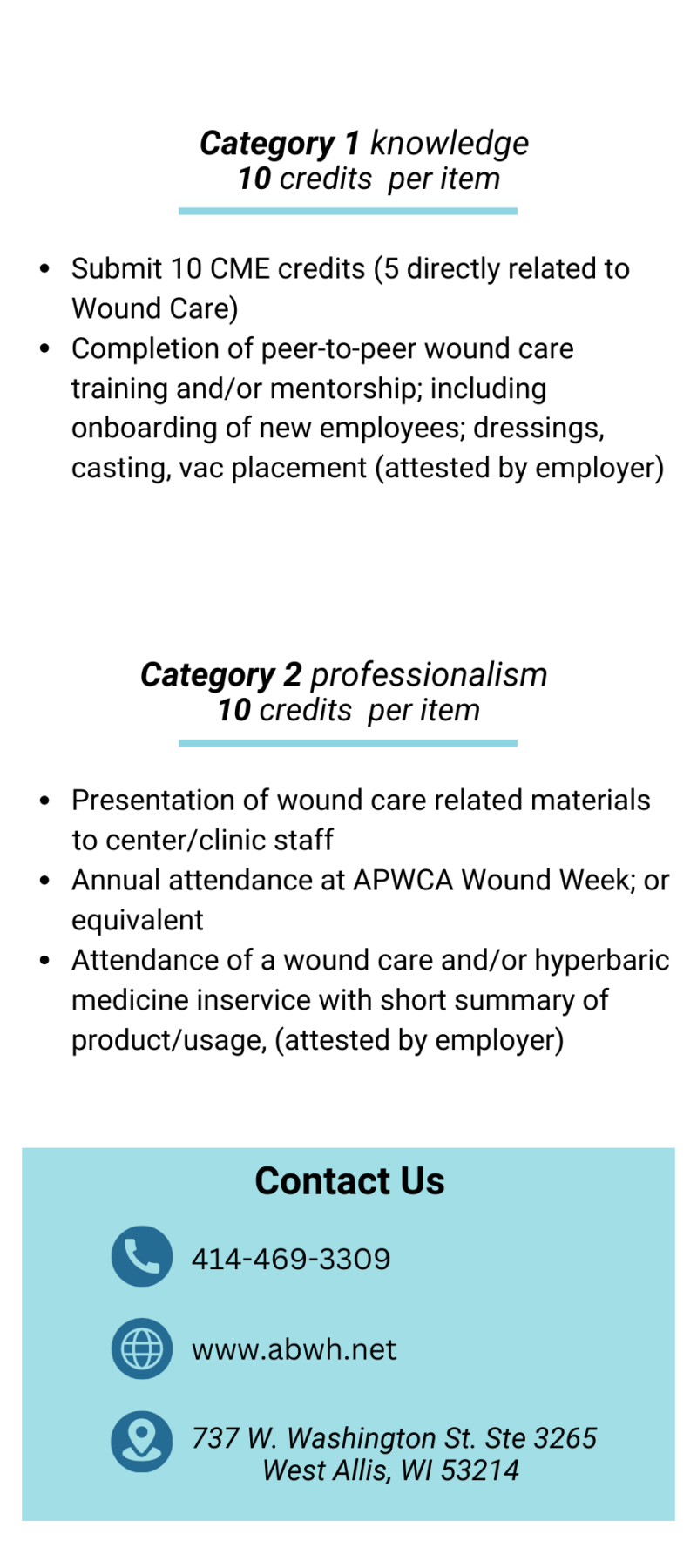 - Ensure at least 5 CME credits directly relate to wound care practice