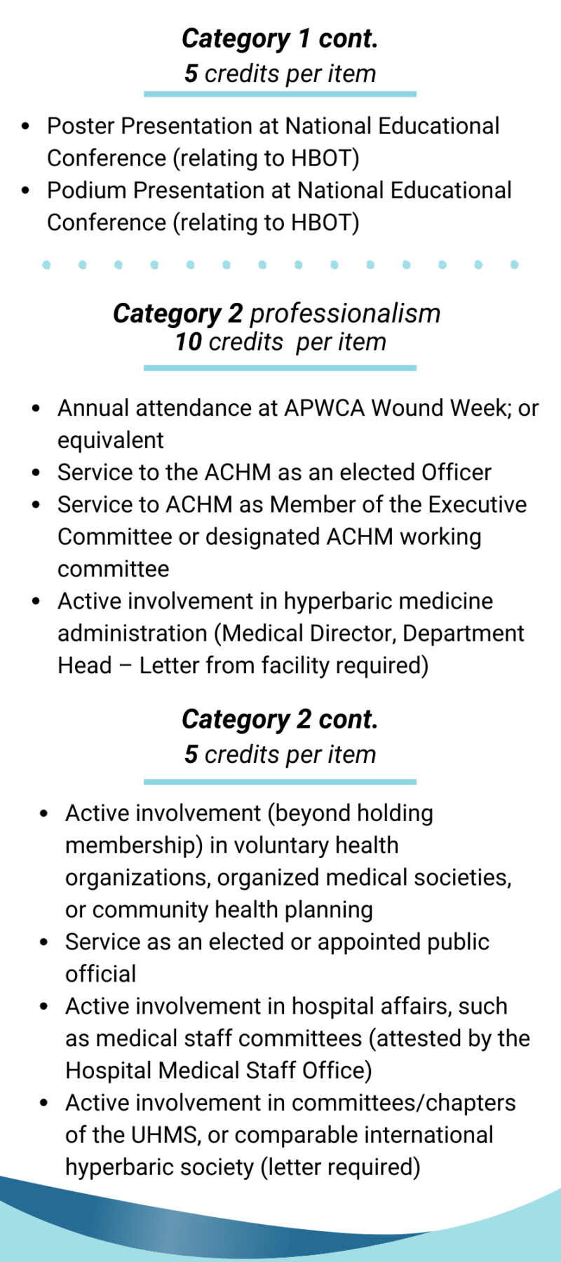 - At least 5 CME credits must focus on hyperbaric medicine